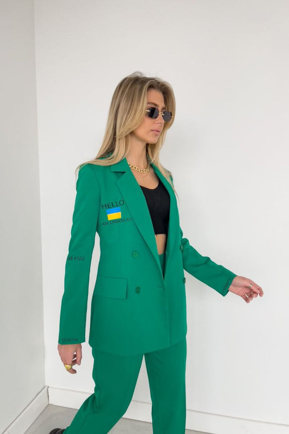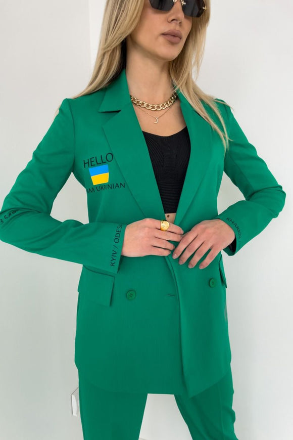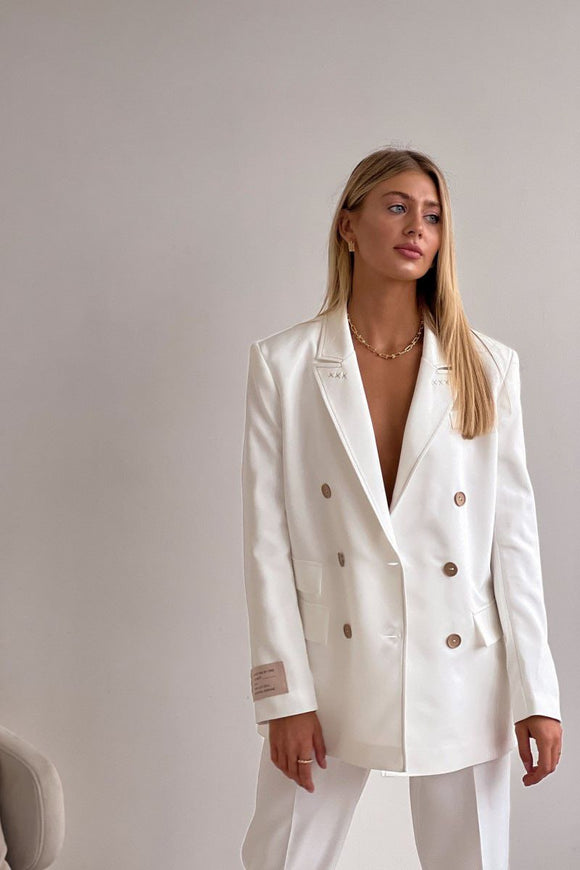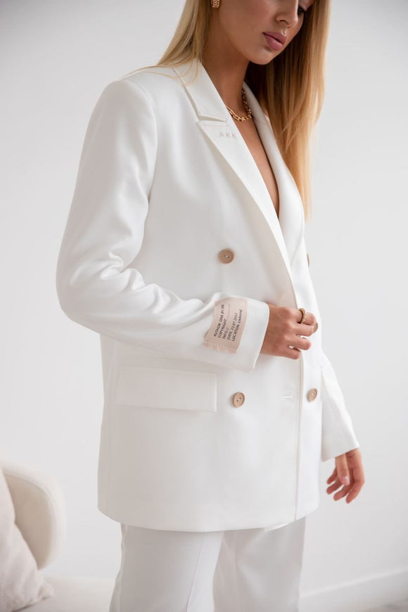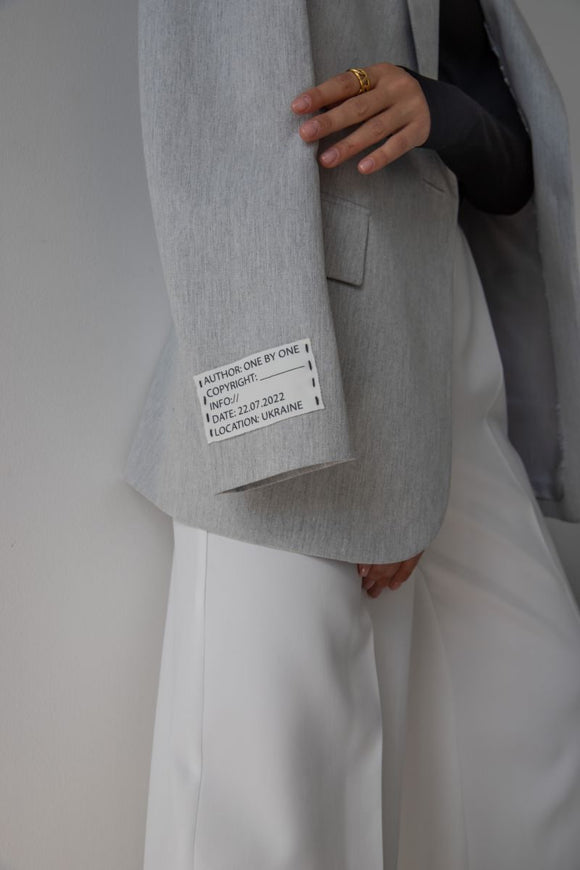 Baltas dvieilis švarkas su pleistru ant rankovės iš Ukrainos | Nemokamas pristatymas